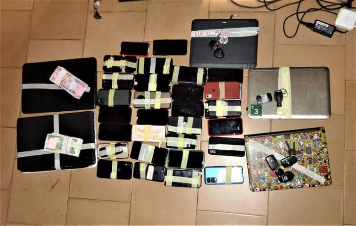 Items recovered from them are, three cars, mobile phones and laptops of various brands and other incriminating documents.