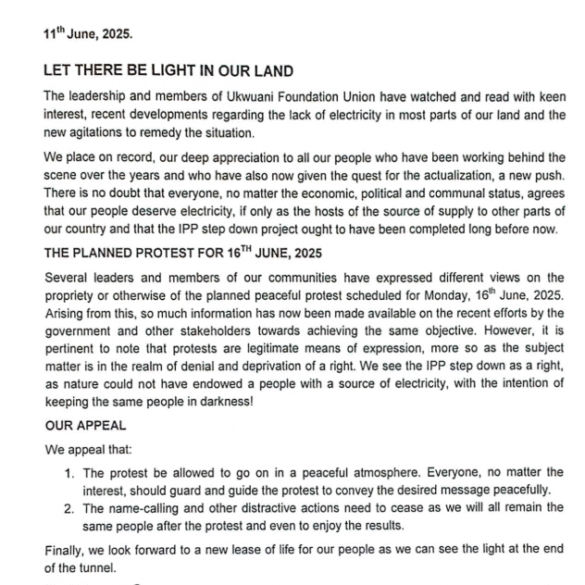The Ukwuani Foundation Union (UFU) has declared its full support for a peaceful protest scheduled for June 16, 2025, to...