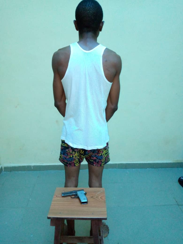 The Operatives who acted on an intelligence, recovered a local fabricated berretta pistol without magazine at Ibusa, the suspect’s residence.