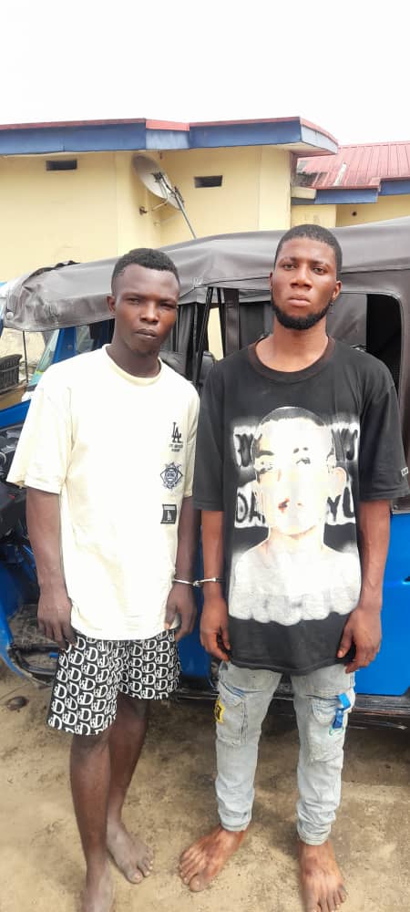 “Consequently, on the 23/2/2022 at about 1200hrs, upon an intelligence-led the investigation, the hoodlums were trailed to their hideout in Eghwarha road Agbarho, where two (2) suspects namely: Goodluck Ahirima ‘m’ age 24yrs and Charles Oyibocha ‘m’ age 24yrs were arrested and the snatched tricycle recovered. The investigation is ongoing,” it said.